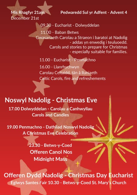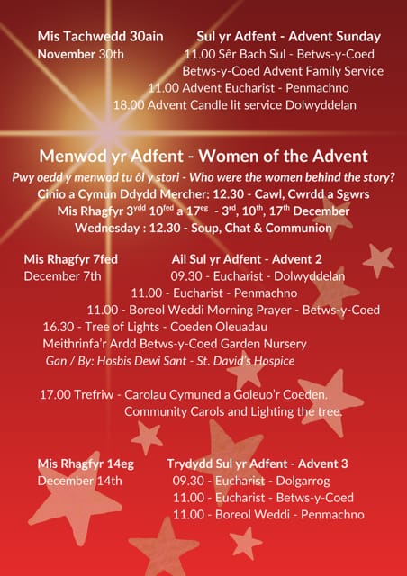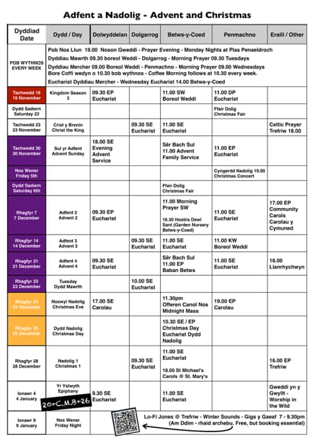 Adfent a Nadolig – Advent and Christmas (link to rota list – below)